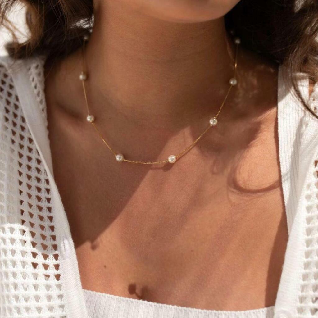 Invista no Colar Pérola Sintética 45cm e eleve seu visual com uma peça que une luxo, qualidade e sofisticação em uma semi joia banhada a ouro 18K.